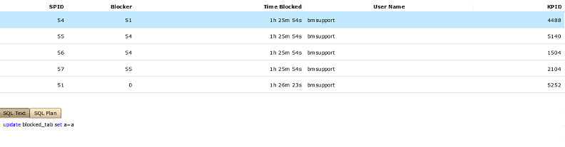| Blocker | Blocker session process ID (SPID); 0 = the row is a blocker process |